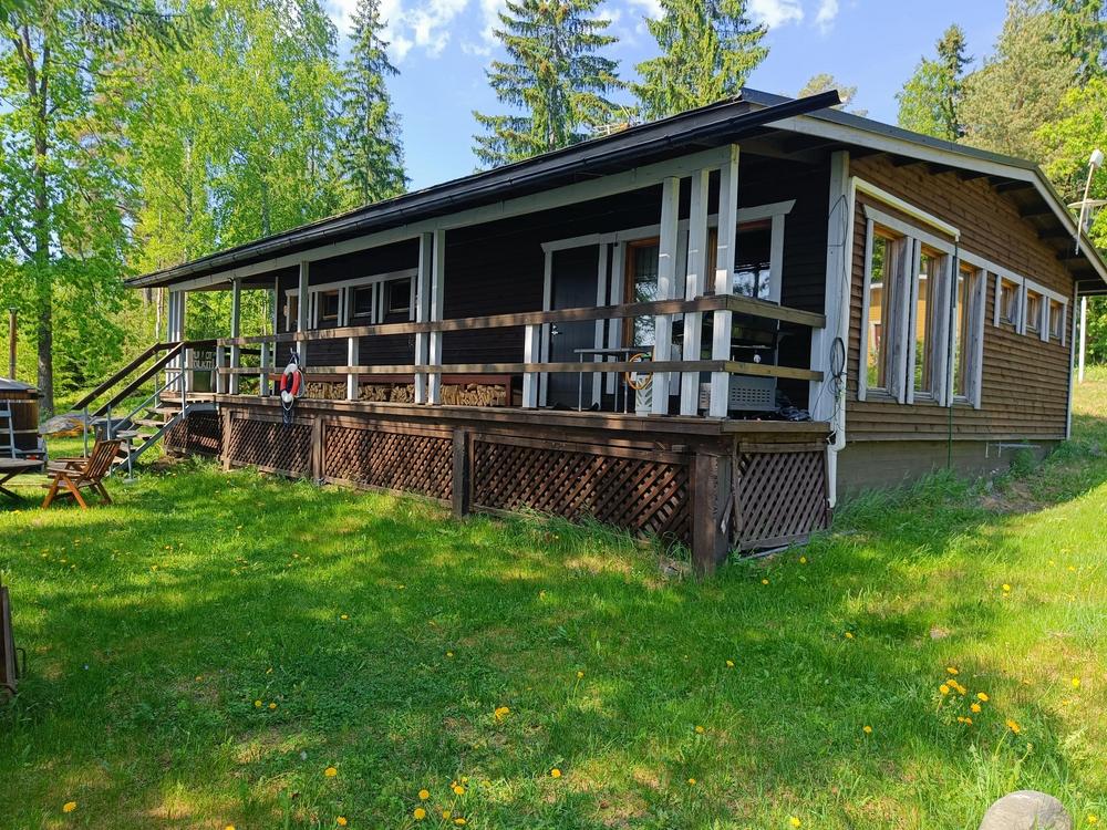 Rentoa mökkitunnelmaa perinteisen suomalaisen järvimaiseman äärellä