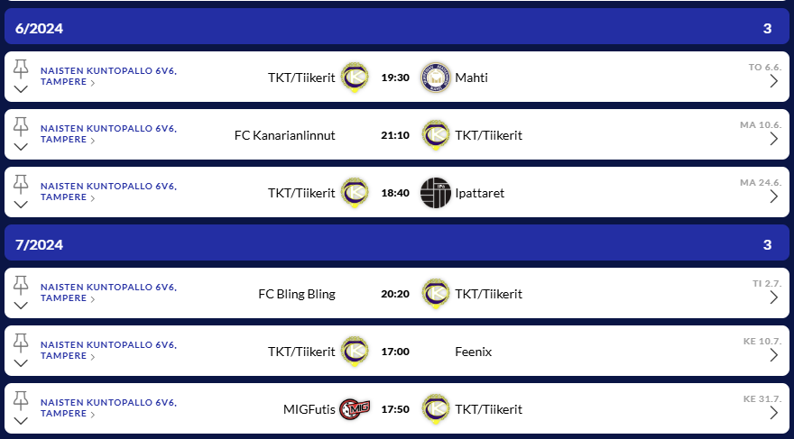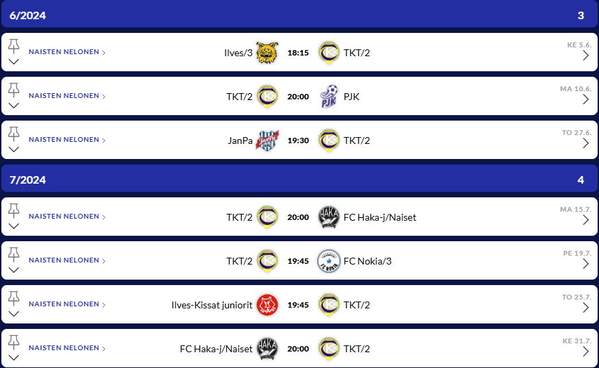 TKT naisten edustusjoukkueenpeleihin voit ostaa kausikortin, jolla tuet samalla joukkueen toimintaa. Alla olevasta linkistä pääset tekemään kausikorttitilauksen kotisivuiltamme: