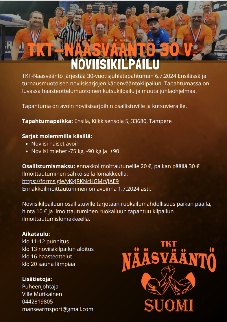 Nääsväännön 30-vuotisjuhlia vietetään Ensilässä noviisikilpailujen merkeissä lauantaina 6.7.2024 klo 11.00 alkaen! Tapahtuma avoin kilpailuun osallistuville ja kutsuvieraille.
