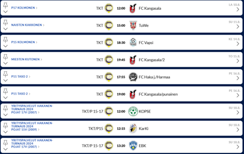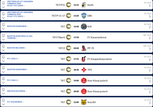 Tulevat kotiottelut: